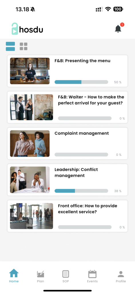 1. In Home view you can find the assigned courses for you. If this page is empty, then you have no assigned or active courses.