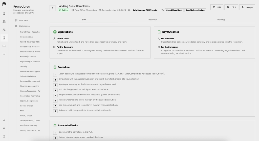 Hospitality-specific templates and workflows. Easy SOP creation and real-time updates. One dashboard for training, execution, and compliance. Boosts team accountability and consistency. Works for frontline, back-of-house, and corporate teams